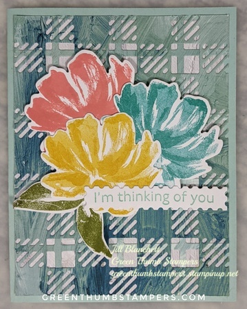 Stampin' UP! Art Gallery bundle, Fine Art floral designer series paper and Best Plaid Builder dies were used to create this striking card.