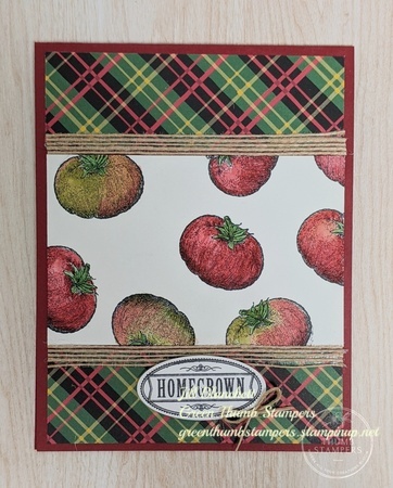 I reached into the archive closet and pulled out this set from the Stampin' UP! 2010-11 catalog! I had some old Christmas DSP that I used as well and really like how it turned out. Everything was stamped with memento tuxedo black ink and the tomatoes were colored with my Stampin' Blends.