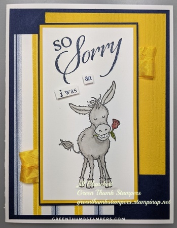 Stampin' UP! has this adorable Darling Donkey set as part of the freebies for Sale A Bration this year. Oh aren't hey cute! Well, the Jill in me sees the snarky side of the cuties and I created this second card!